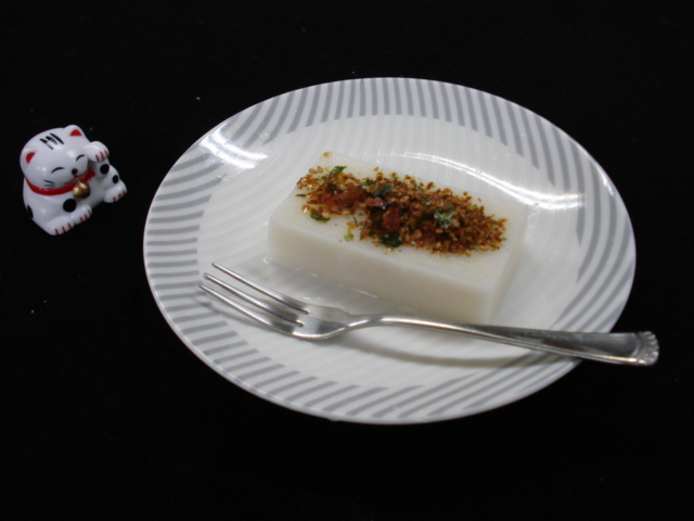 | | この後は試食ですが、 さすがに何もつけないと味気ないので、 おかかのふりかけをかけていただきます!
