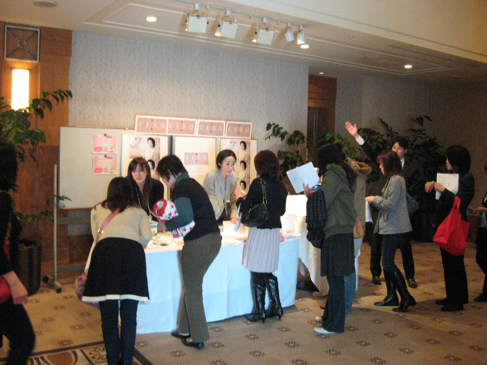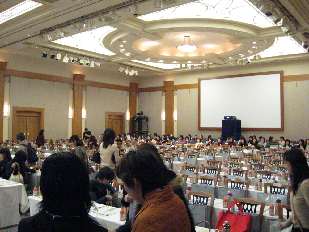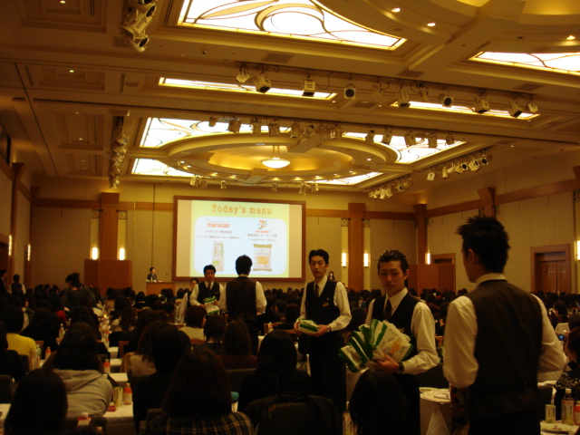 つまり商品の宣伝(プロモーション)と 市場調査(マーケティング)をいっぺんにできるイベントなのです! | | まず驚いたのが会場の広さ! 私が着いた頃はイベント開始前だったので、 2割程しか席はうまってませんでしたが、 次から次へとお客さんが入ってきます。