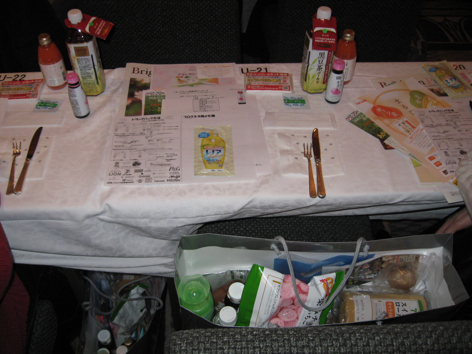イロイロな商品が袋詰めにされて、 各席に置いてあります。。。