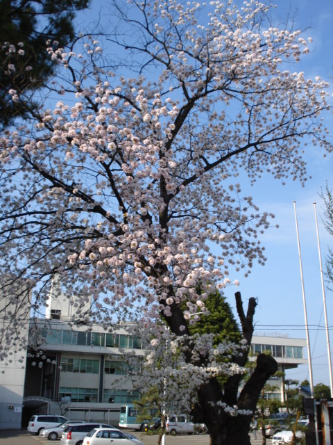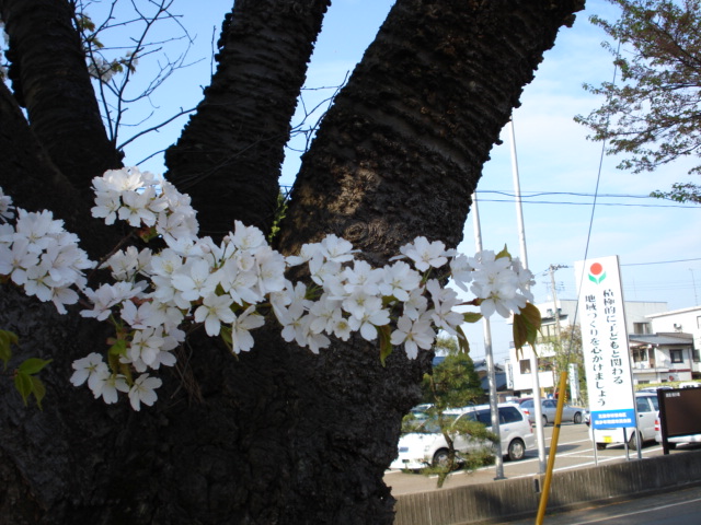 | 先週の強風で村松公園の桜はほとんど散ってしまいましたが、 市役所の前の桜の木は満開でした☆