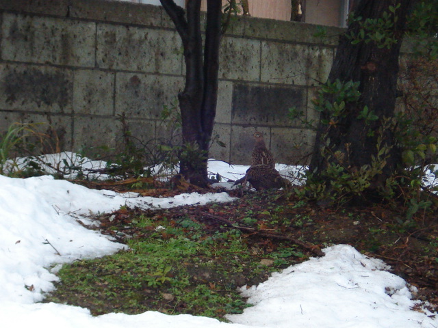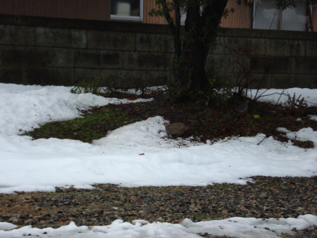 連日の雨で雪が溶けて 地面が見えてるから、 餌をついばみにきたのでしょう・・・・・。 | | 他にももう一羽いました☆ | 今更ながら、 地物田舎さを実感してしまいました。