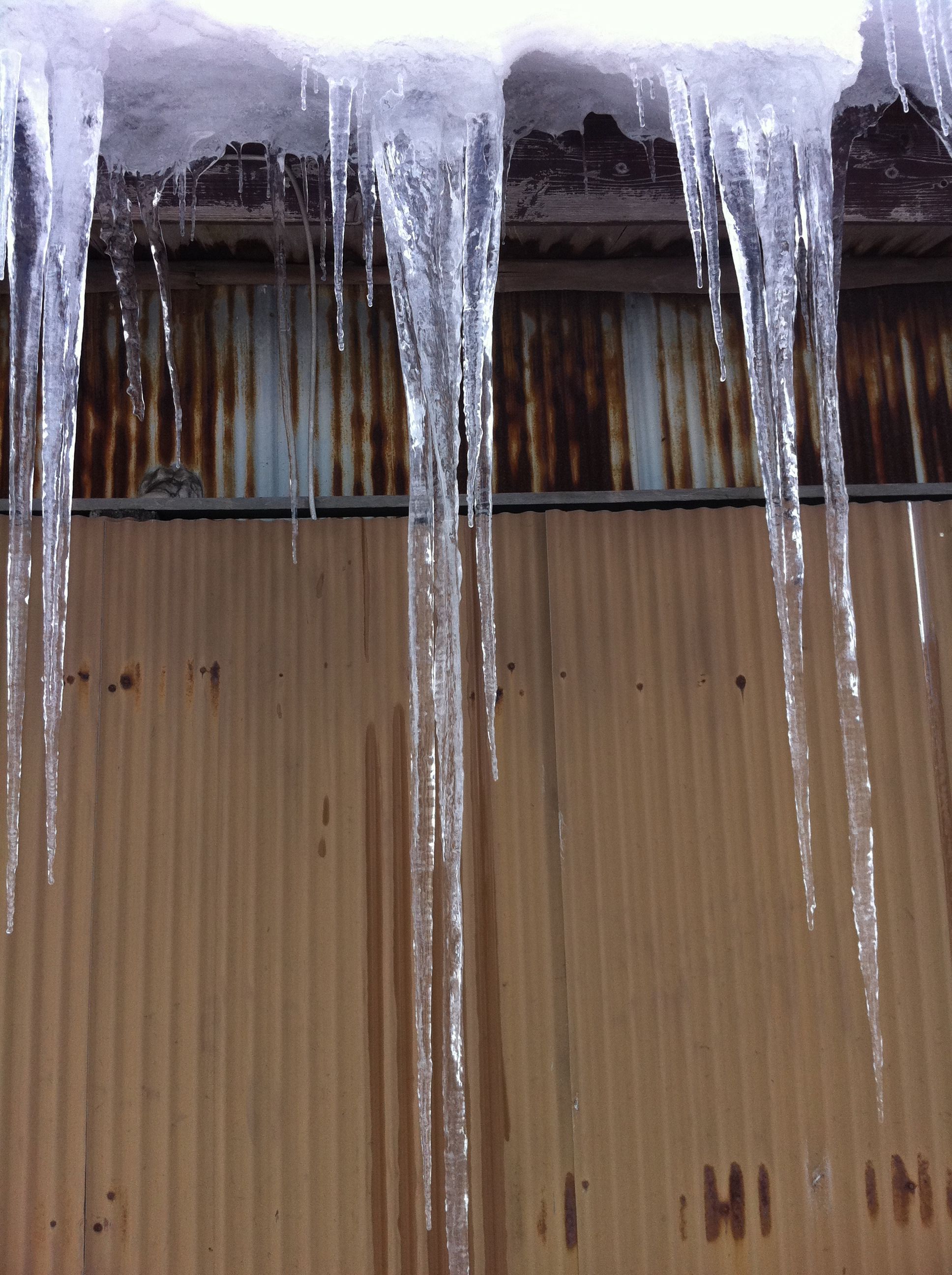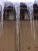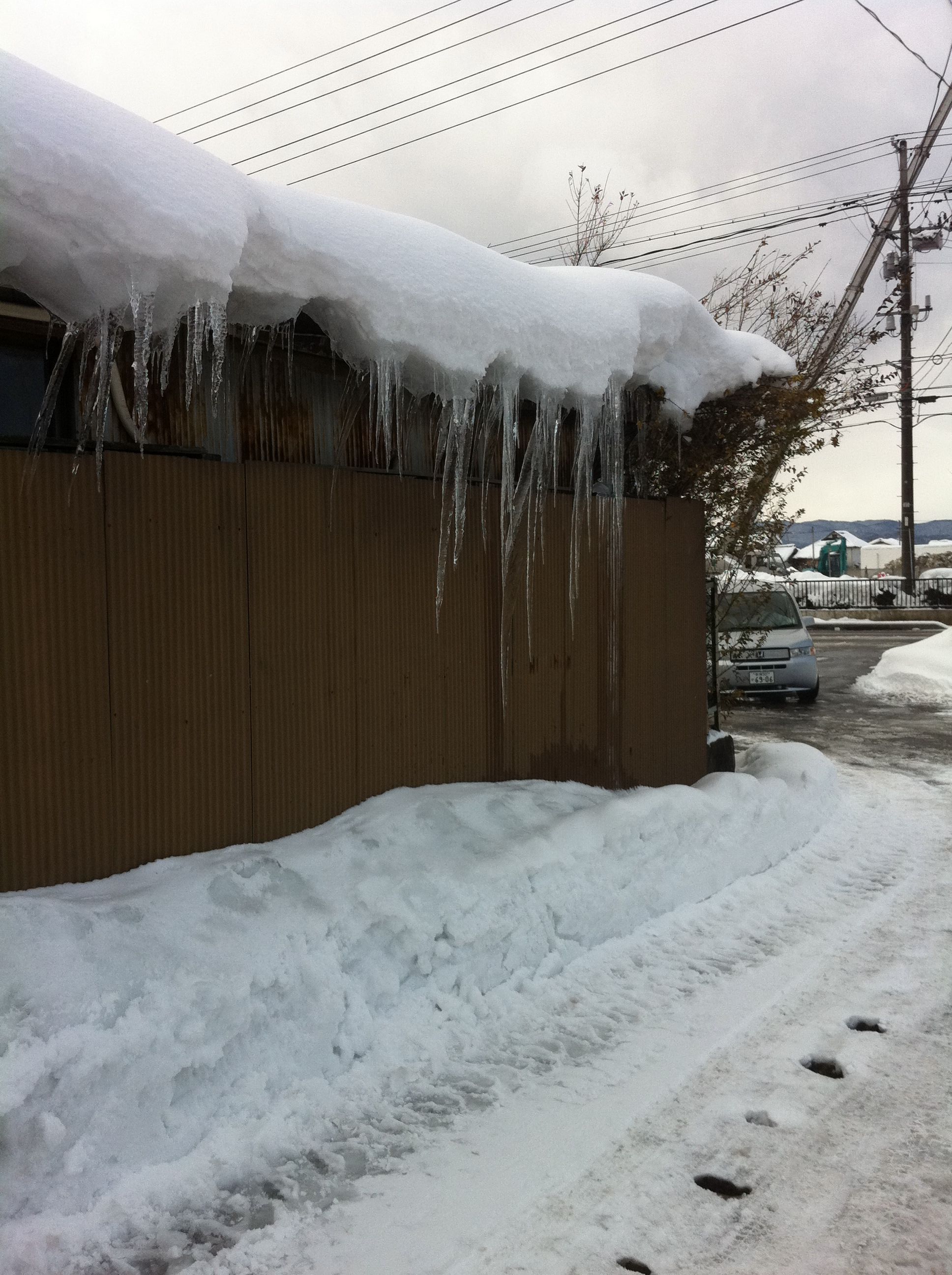 端っこの車と比べてみてください。 軽く4〜5mはあります。 | | | 屋根にできたつららも・・・・ | | 長〜〜〜く成長。。。 2m位かな?・・・・・・ | ホントに寒いです!!!
