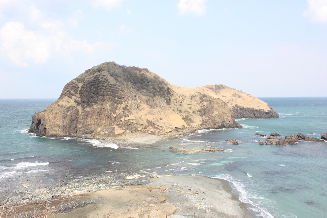 | | どうですか?亀に見えますか?? 本当は5月くらいに行くと島・・・ではなく亀が新緑で青々としてすごく良い眺めです! この時は潮の満ちの関係(?)で通路がふさがっていましたが、本来は亀の方へ渡る通路があり、夏は海水浴で大賑わいの場所です。