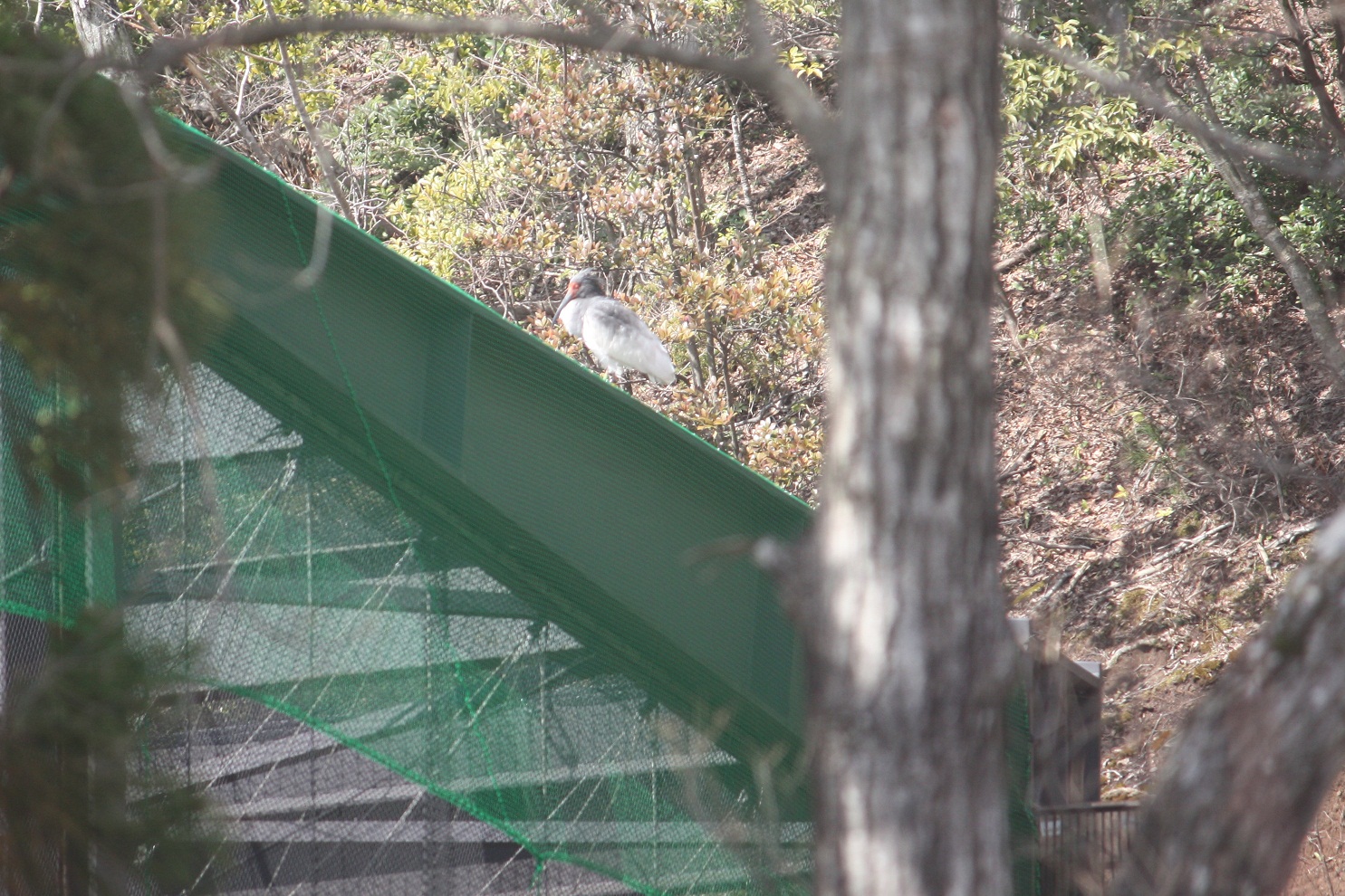 屋根の下(ステーション内)にいる朱鷺は木の陰になって良く見えませんでしたが、たまにステーションの中で飛んでいる朱鷺が見えた時は感動!!(シャレじゃないですよ・・・) 羽の裏がきれいなピンク色でした!