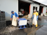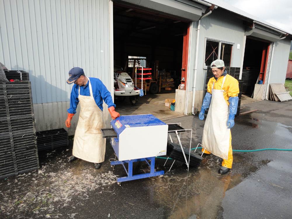機械を洗ったり、苗の入っていた箱を洗ったり…。