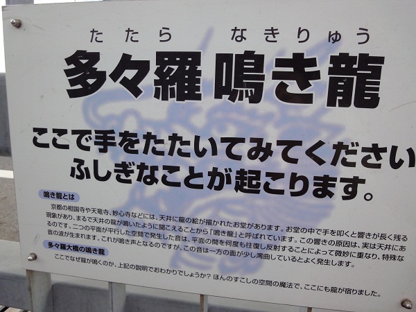 多々羅大橋へは瀬戸田PAから歩いて行けるようになっています。 てくてく歩いていくと…橋の白い部分の下にこんな看板が!