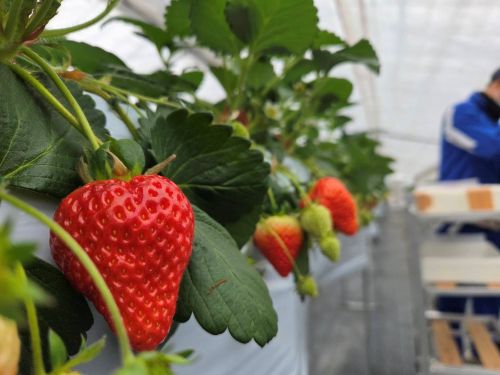 外は寒いですがハウスの中はぽかぽか。 ミツバチさんのおかけで真っ赤な美味しいいちごができました。