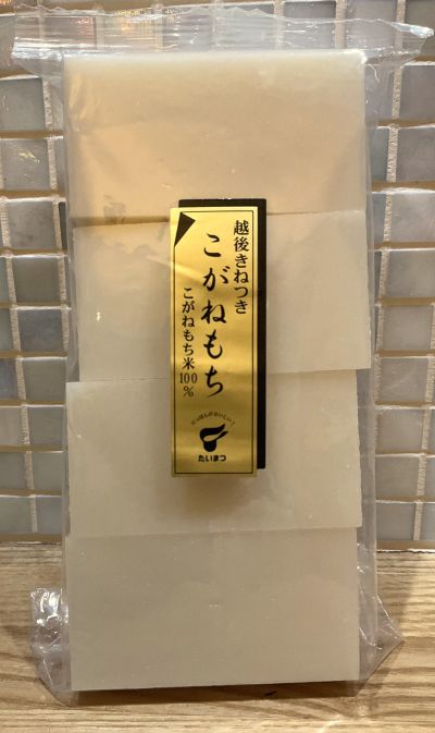 本日は人気商品の「越後杵つきこがねもち」のご案内です。 | | 新潟県産こがねもちもち米を100%使用。 お米のおいしさを引き出すために独自の二段杵搗き、急冷製法で 作り上げています。 きめが細かでコシが強く、風味の良いおもちです。