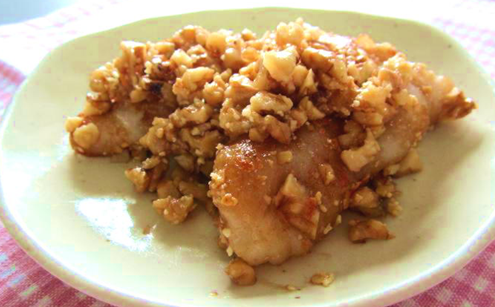 くるみを細かく刻み、メープルシロップ、粉チーズと混ぜ合わせておく。 |